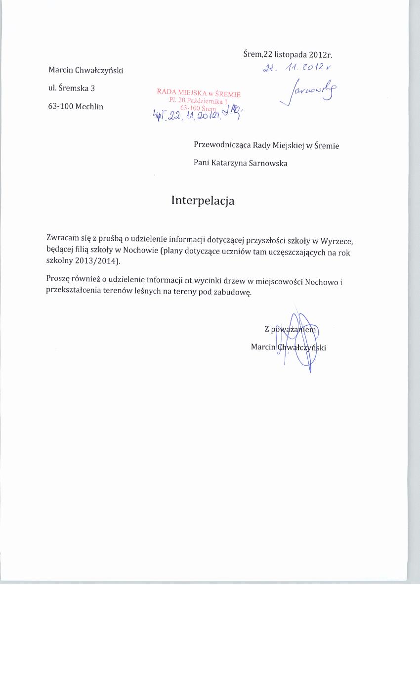 nazwa: Treść interpelacji radnego M.Chwałczyńskiego