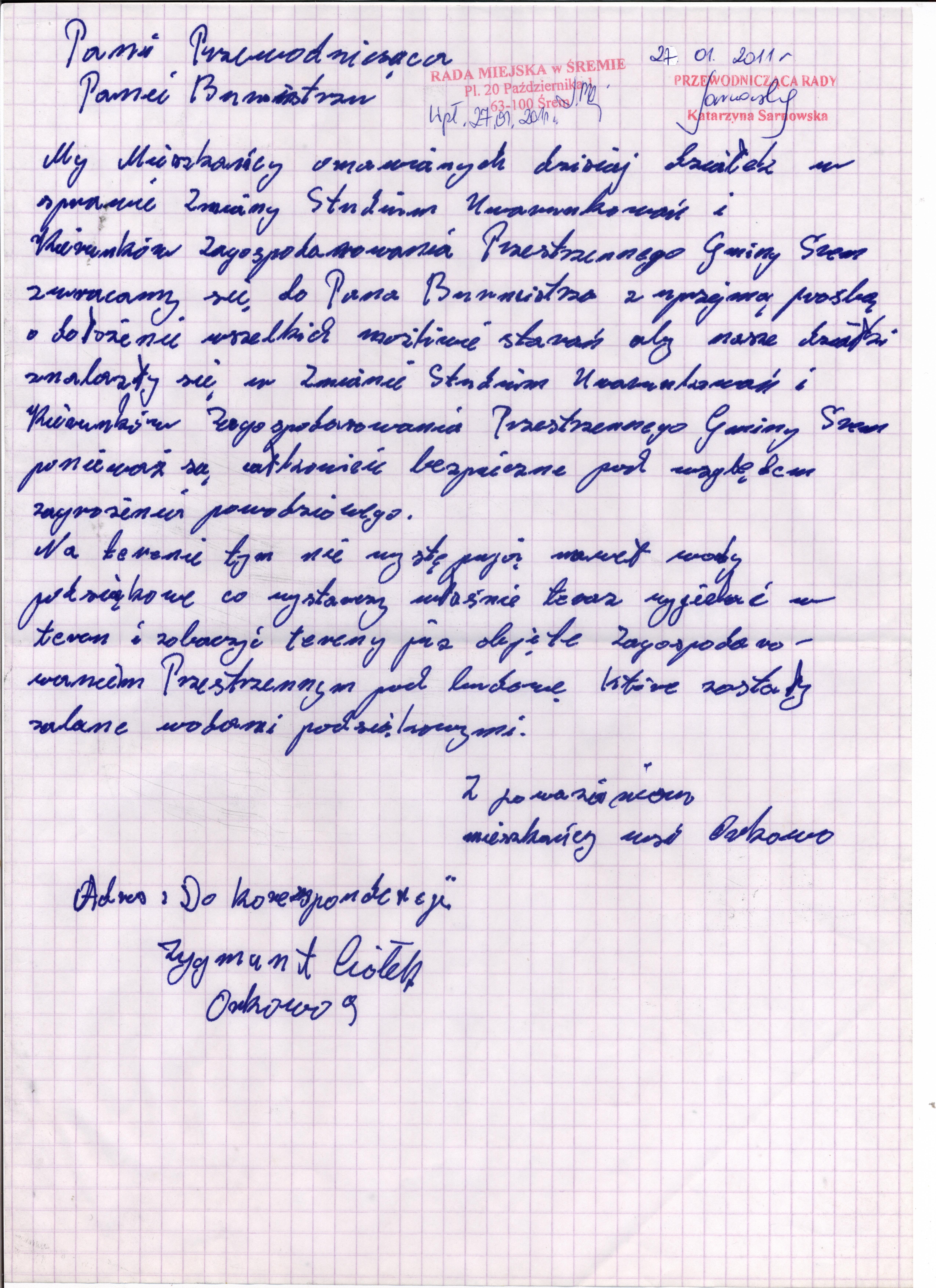 nazwa: treść pisma radnego Z.Ciołka
