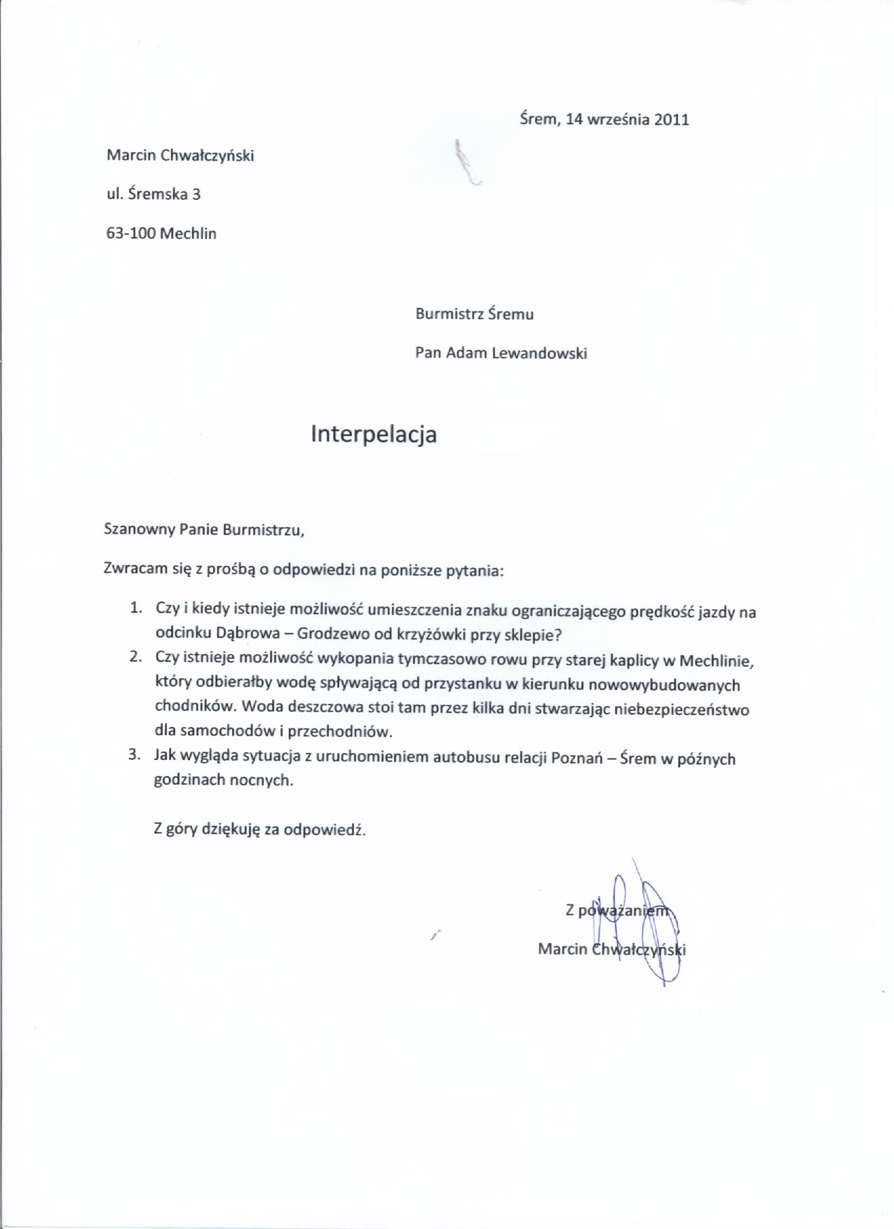 nazwa: Treść interpelacji radnego Marcina Chwałczyńskiego