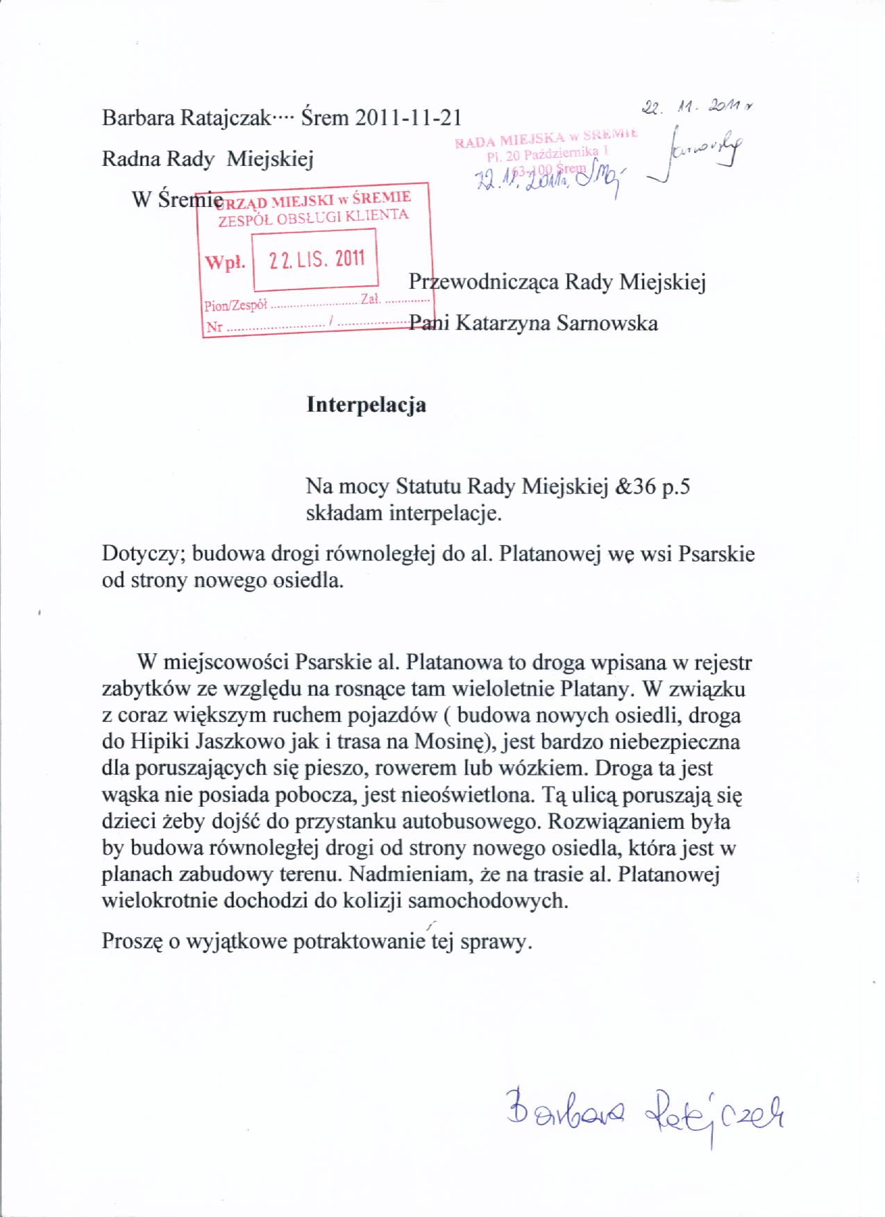 nazwa: treść interpelacji radnej B.Ratajczak